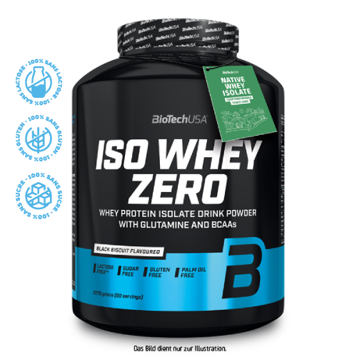 Isolat de protéine de lactosérum de qualité premium, à base de protéine de lait native, sans sucre*, lactose** et gluten, avec BCAAs et les acides aminés de glutamine ajoutés.