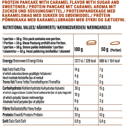 Les amateurs de snacks fitness sucrés seront ravis. Nos pancakes moelleux fourrés d’une délicieuse crème protéinée donnent un nouvel accent à la nutrition axée sur le fitness. La pâte à crêpes est composée Whey Protein, de farine et d’œufs (poules élevées en plein air). Le fourrage d’une délicieuse crème protéinée fouettée.