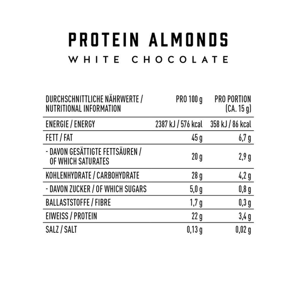 Notre GOT7 Protein Chocolate Almonds White Chocolate Cinnamon offre un délicieux enrobage de chocolat blanc et une charge de cannelle. Bien sûr, cette variété brille également par un excellent taux de protéines et peu de sucre.