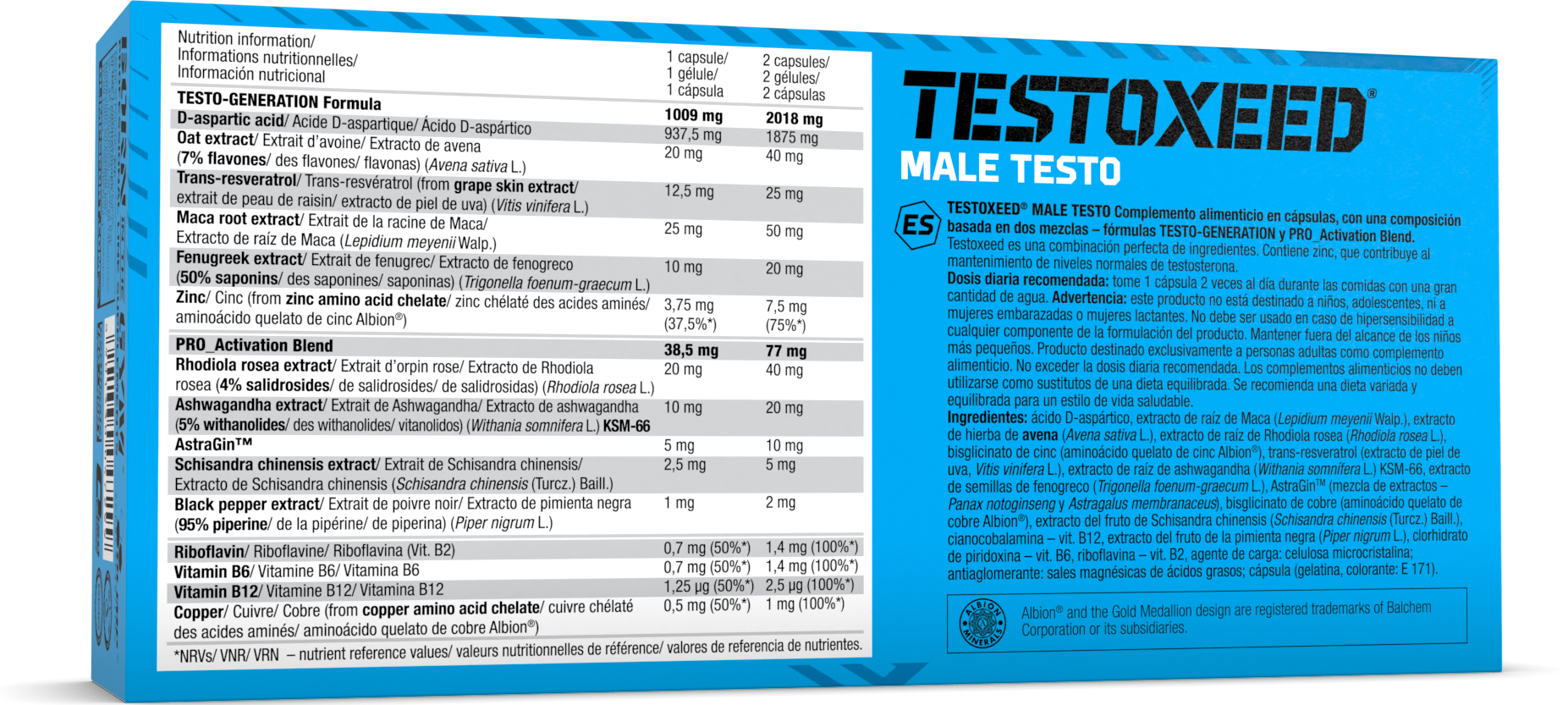 TESTOXEED® Mega Caps® – Complément alimentaire en gélules à base de deux mélanges: formule TESTO-GENERATION et mélange PRO_Activation Blend. Testoxeed est un mélange idéal de composants actifs qui contribuent au maintien d’un taux normal de testostérone dans le sang (zinc) et règle l’activité hormonale (vitamine B6).