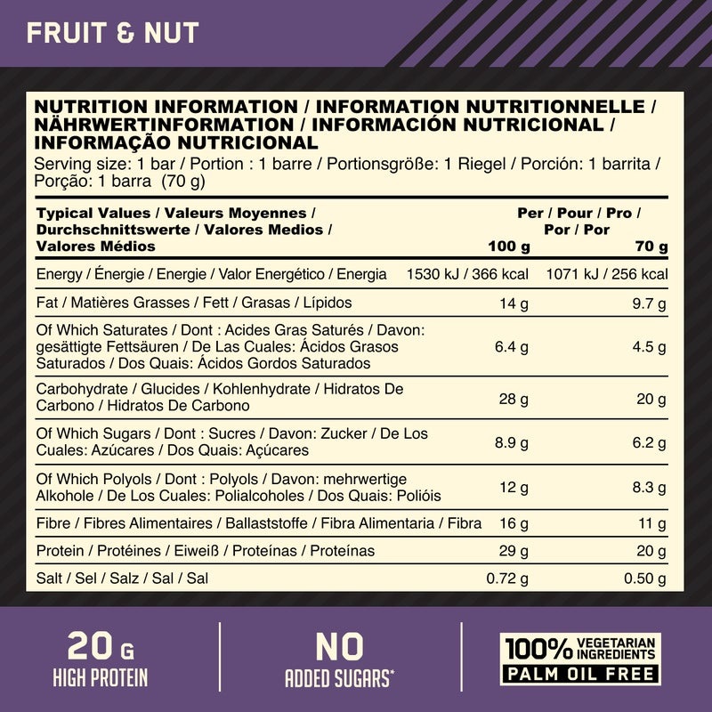 Alors ne vous inquiétez pas, Optimum Nutrition a la réponse ! La nouvelle barre Optimum Nutrition Fruit & Nut Protein Crisp est non seulement pleine de fruits et de noix, mais contient également 20 g de protéines pour aider à développer et à maintenir les muscles.