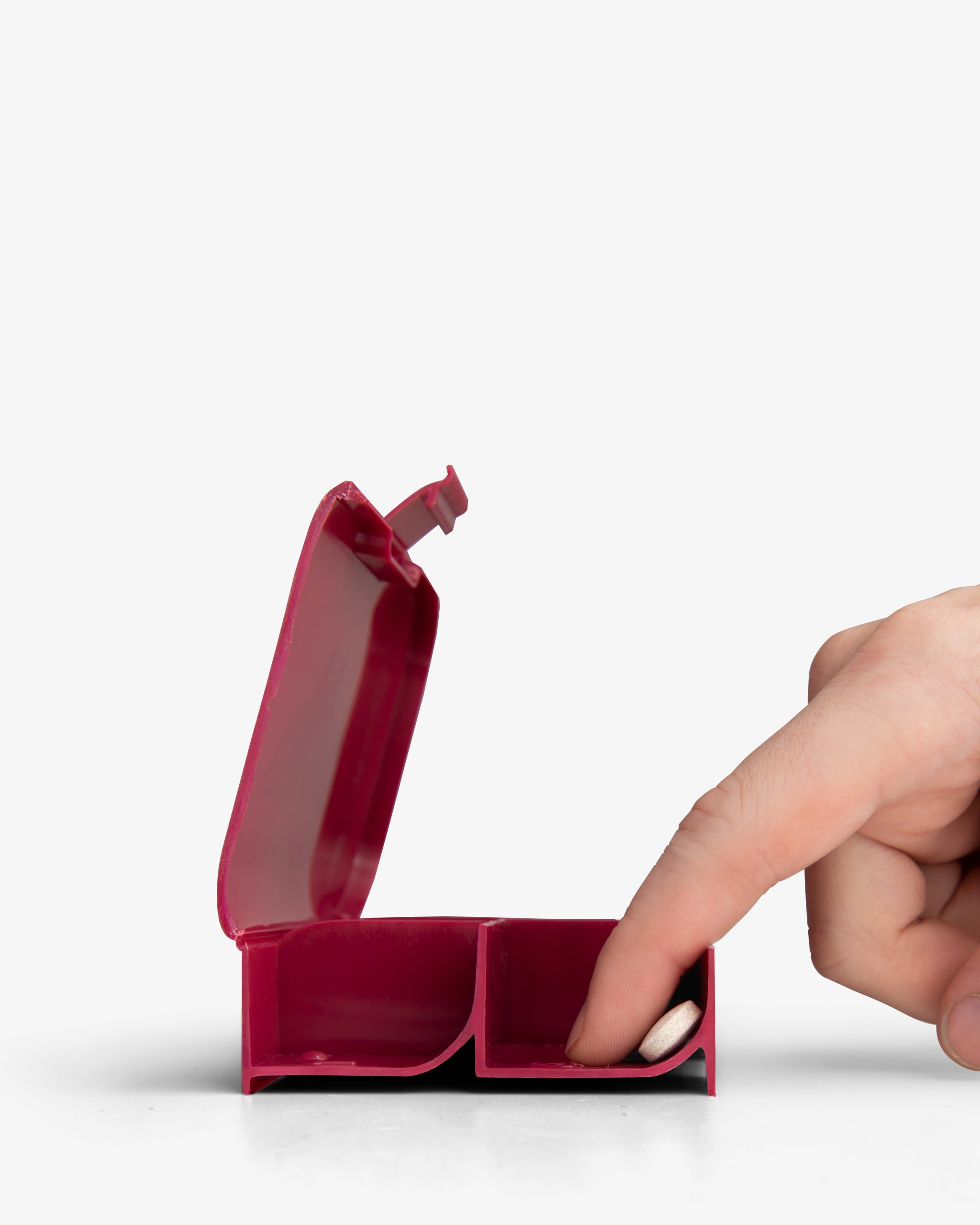 ✓ Coins de rangement arrondis. Pour un accès facile à vos pilules