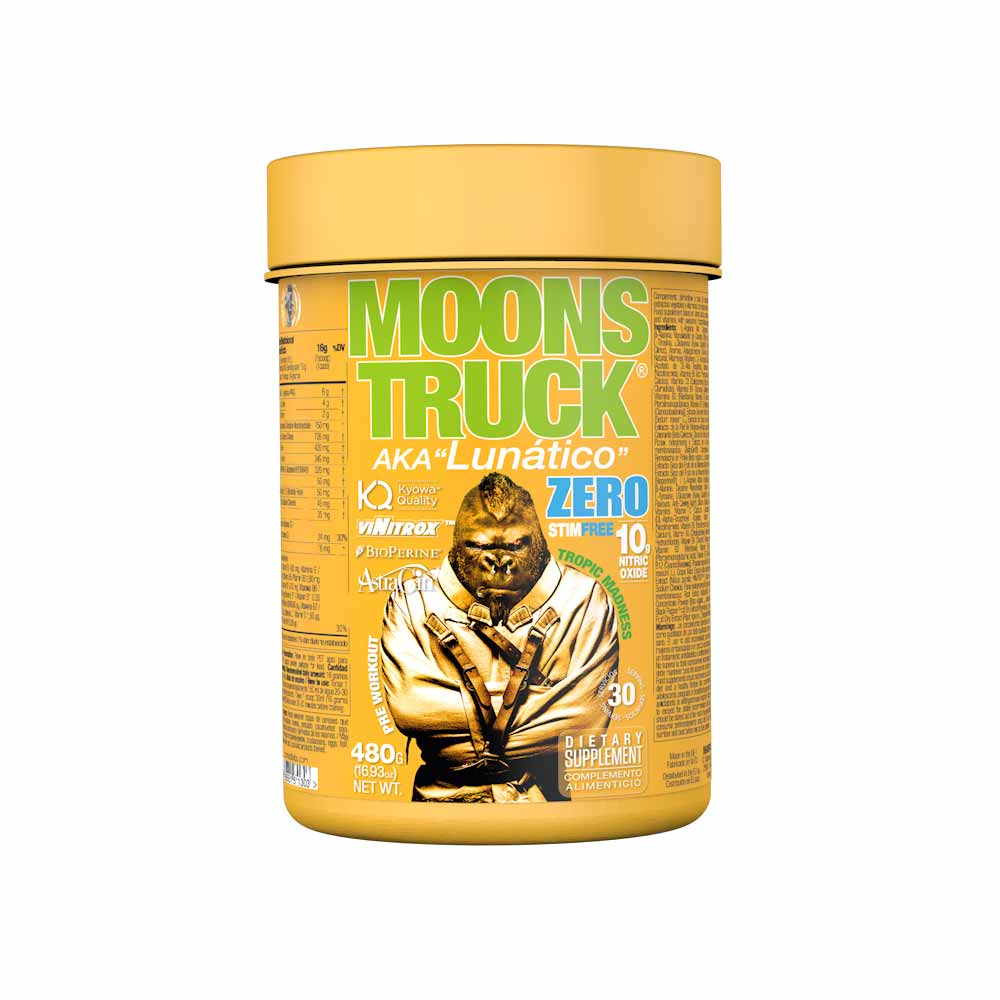 Moonstruck® ZERO, de Zoomad Labs, utilise la même formule que notre best-seller « Lunático », mais sans stimulant, avec 1 g d’AKKG et 1 g de citrulline ajoutés. Tout cela s’ajoute pour fournir 10 g d’oxyde nitrique, ce qui aide à maximiser la congestion musculaire et la vascularisation pendant vos entraînements.